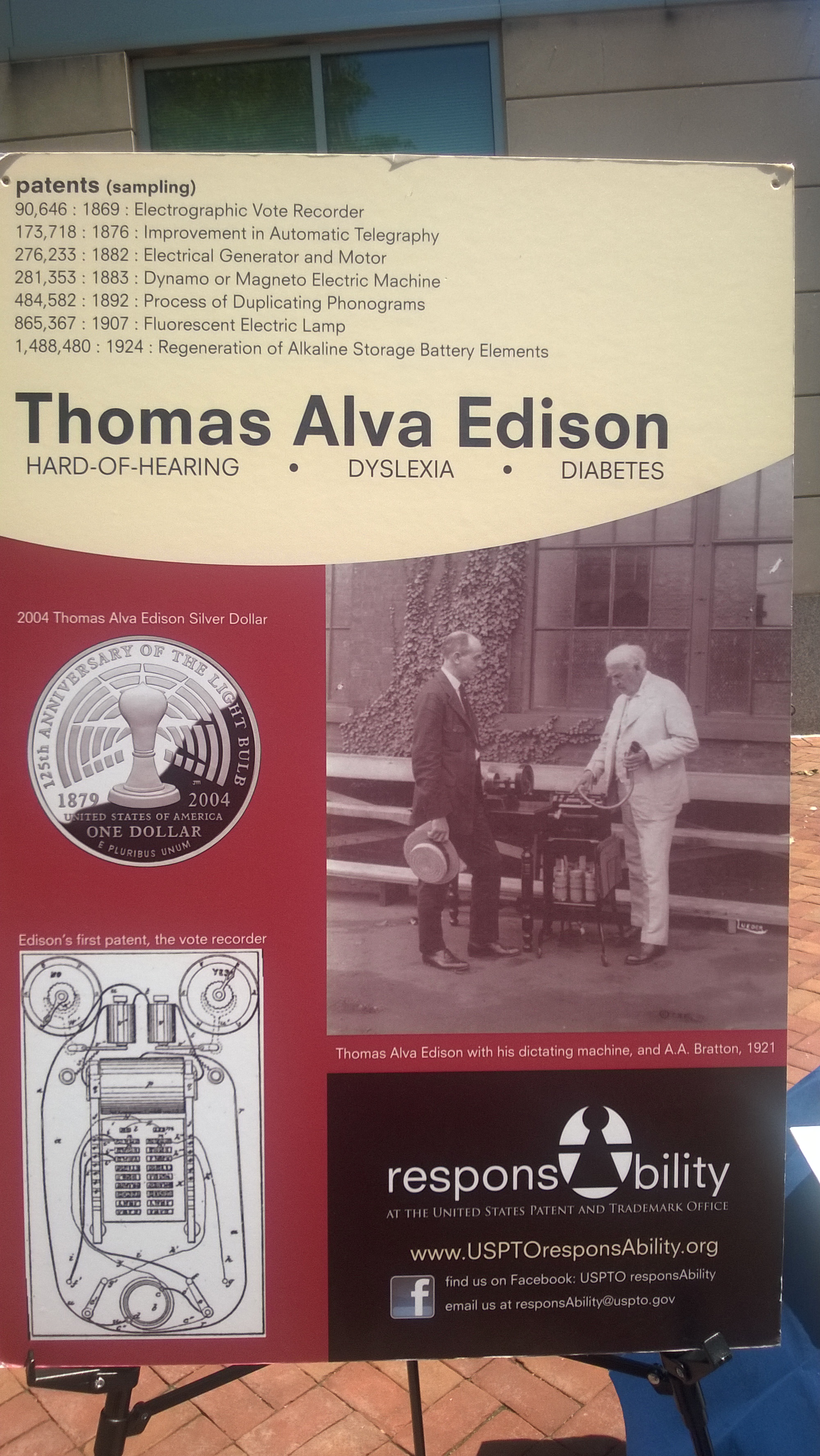 The pictures tell the story of inclusiveness and diversity at USPTO, including tolerance for learning disabilities. Thomas Edison was also dyslexic and hard of hearing…